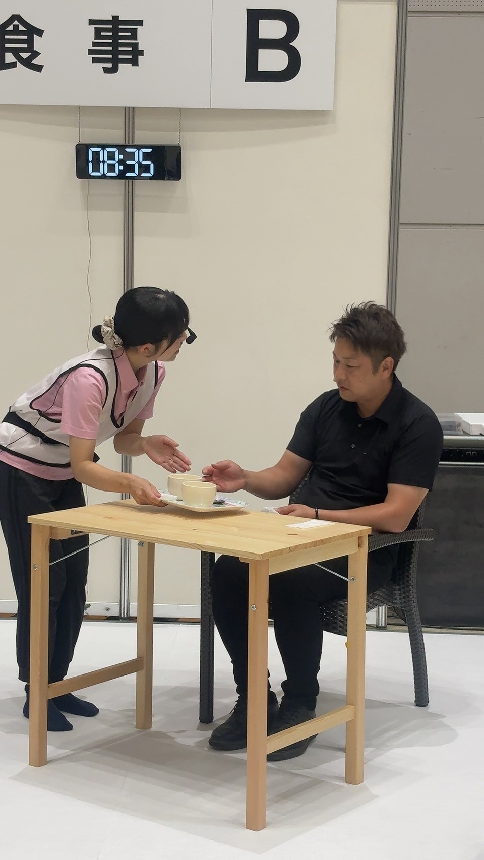 今年は、全国から集まった147名の選手の方々が、「食事」「認知症」等7分野に分かれ、実技を披露されました。実技終了後は、専門アドバイザーからフィードバックと講評があり、多くの事を学べる大会でした。