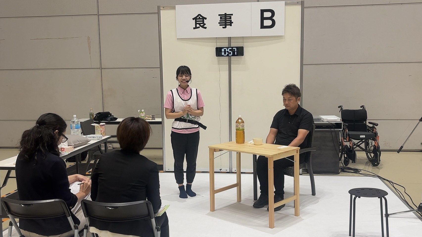 今年は、全国から集まった147名の選手の方々が、「食事」「認知症」等7分野に分かれ、実技を披露されました。実技終了後は、専門アドバイザーからフィードバックと講評があり、多くの事を学べる大会でした。