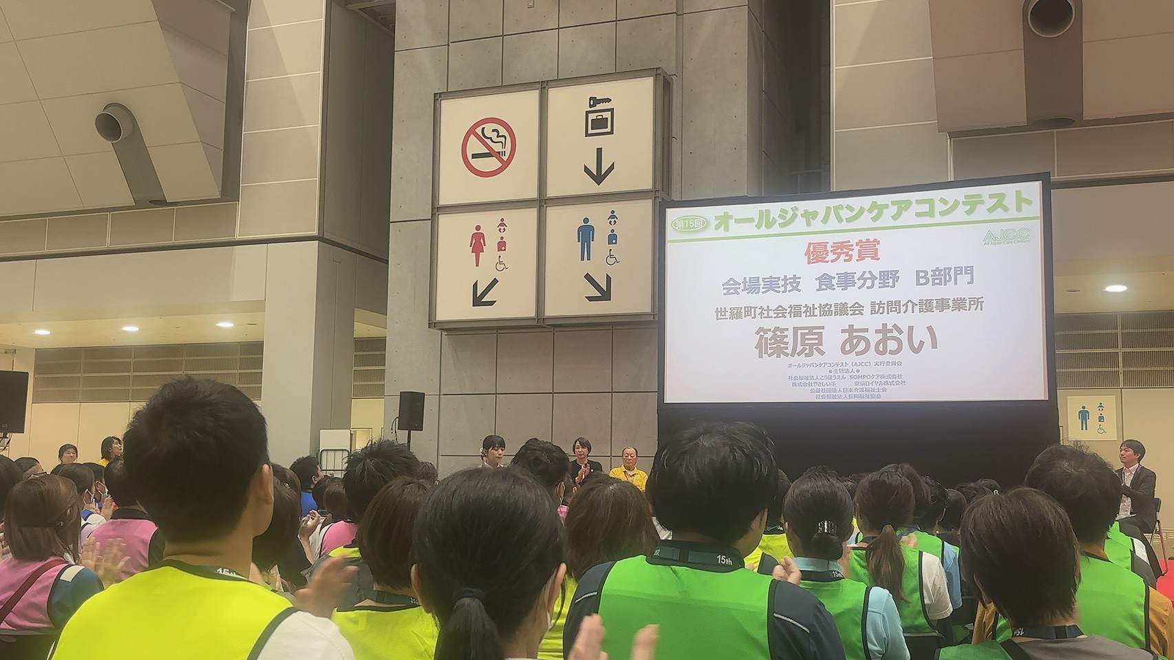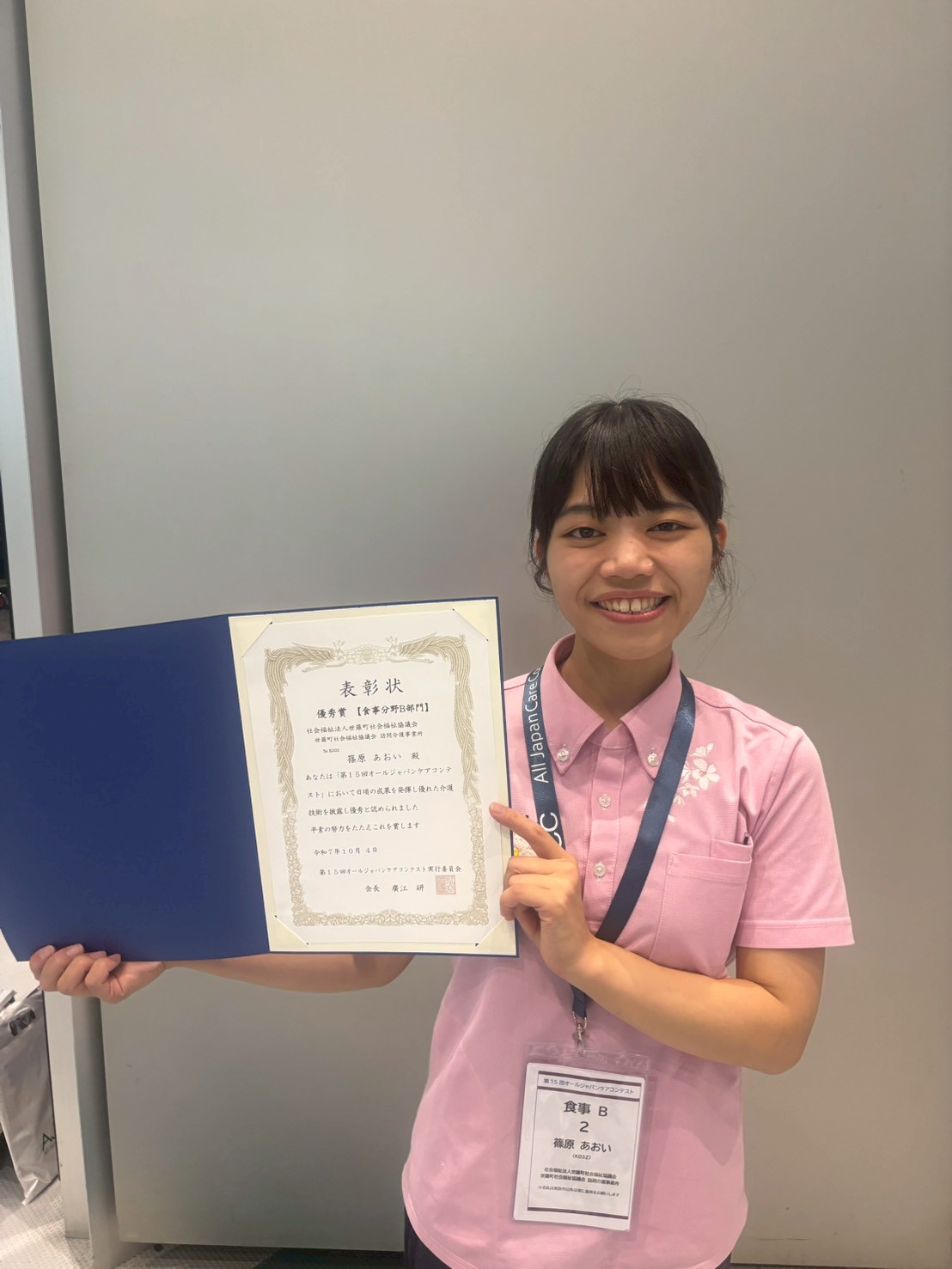 令和7年10月4日(土)に東京ビッグサイトで行われた「第15回オールジャパンケアコンテスト(AJCC)」において、当会の介護職員 篠原あおいさんが優秀賞を受賞いたしました!